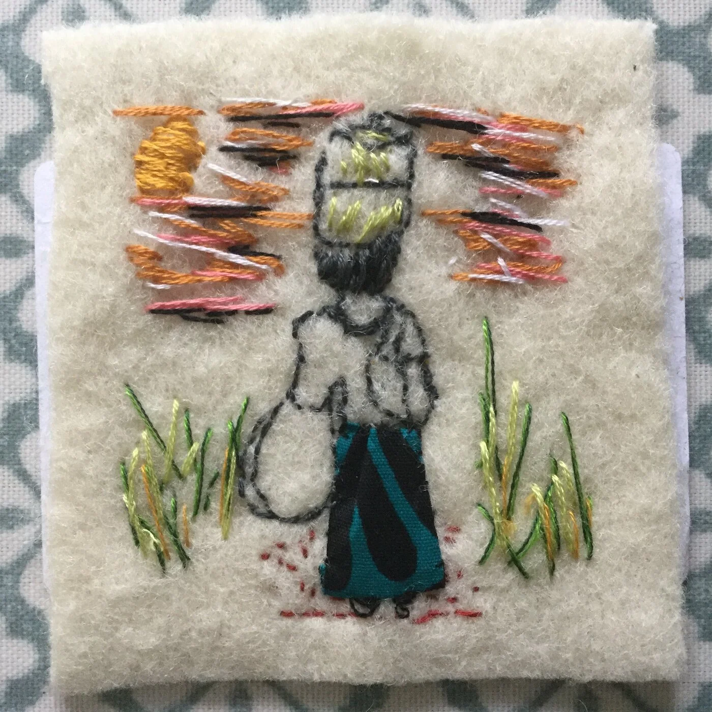 MESSAGE:My patch depicts A Mozambican woman. She is laden with goods to sell at the market and water. She is hopeful that today she will make enough to feed her family.