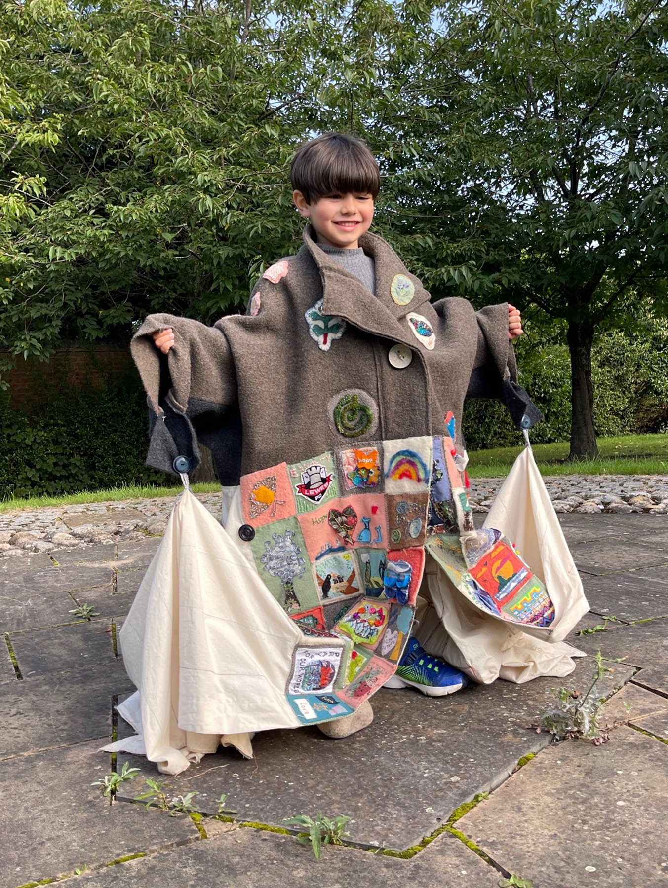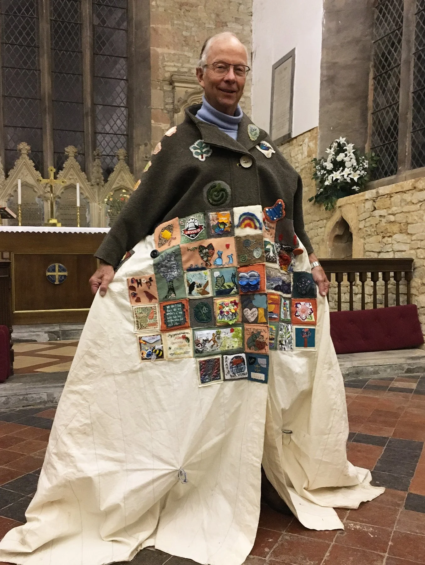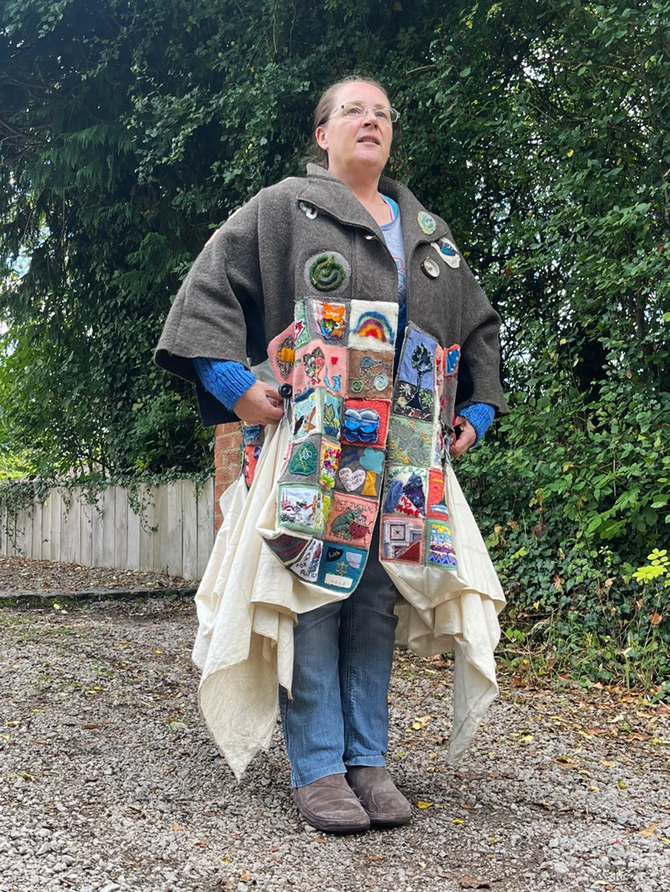 Pilgrims who wore the coat, carried stitched griefs, remembrances, prayers and hopes connected to their local landscapes and stories of migration, to the gathering of world decision makers at COP26 in Glasgow.
