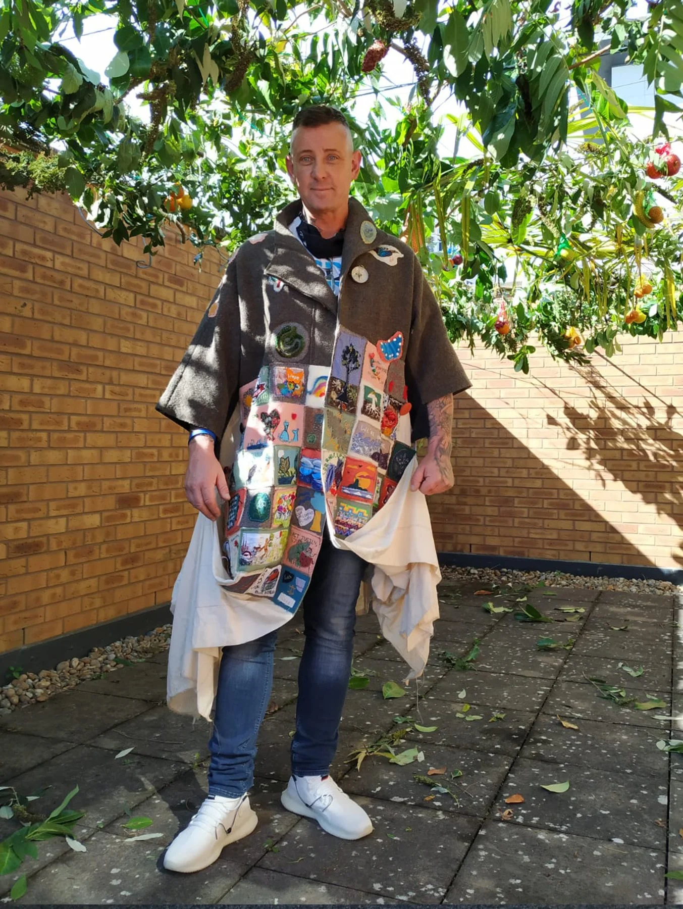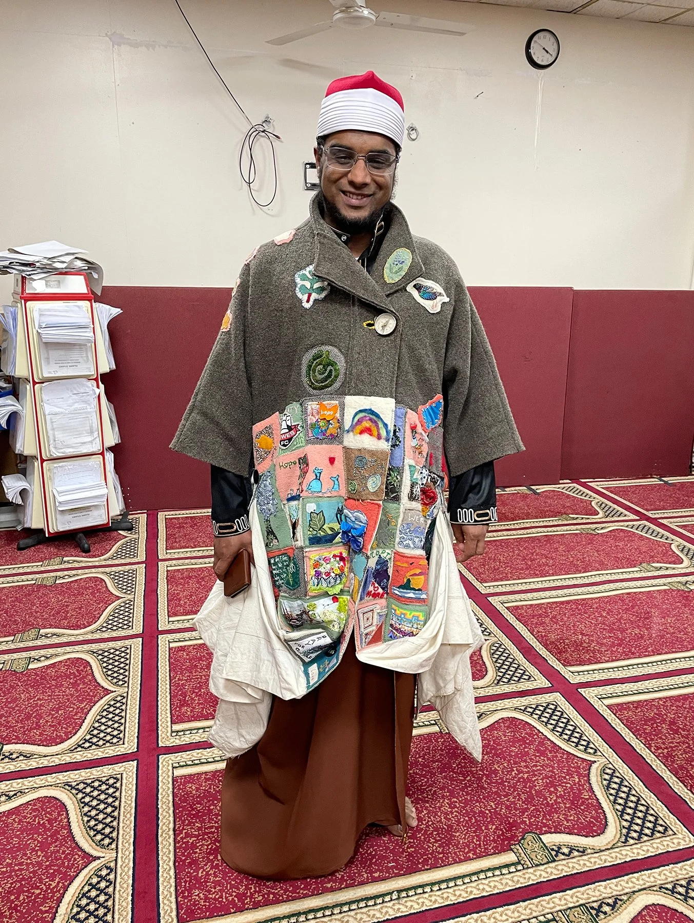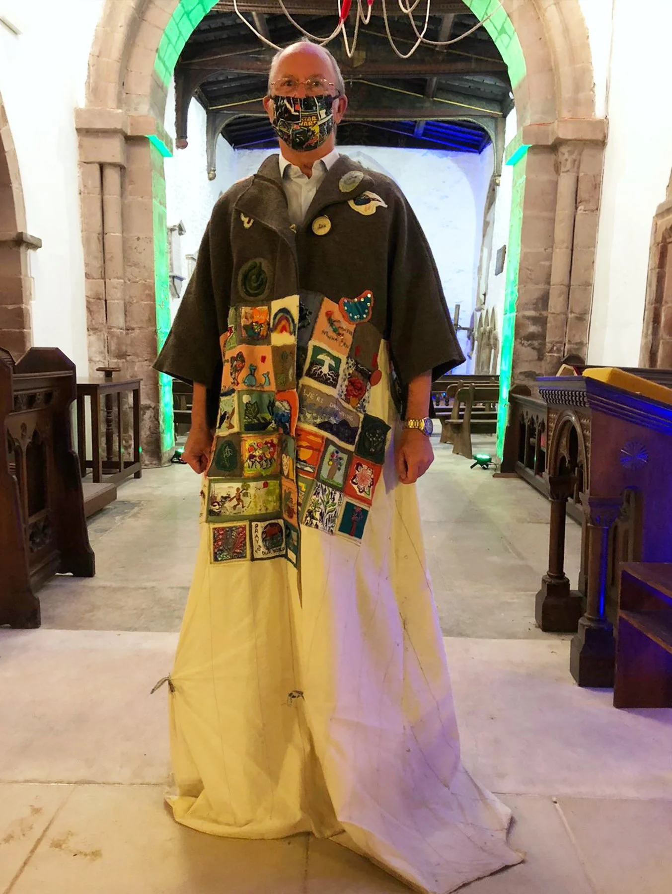 Pilgrims who wore the coat, carried stitched griefs, remembrances, prayers and hopes connected to their local landscapes and stories of migration, to the gathering of world decision makers at COP26 in Glasgow.